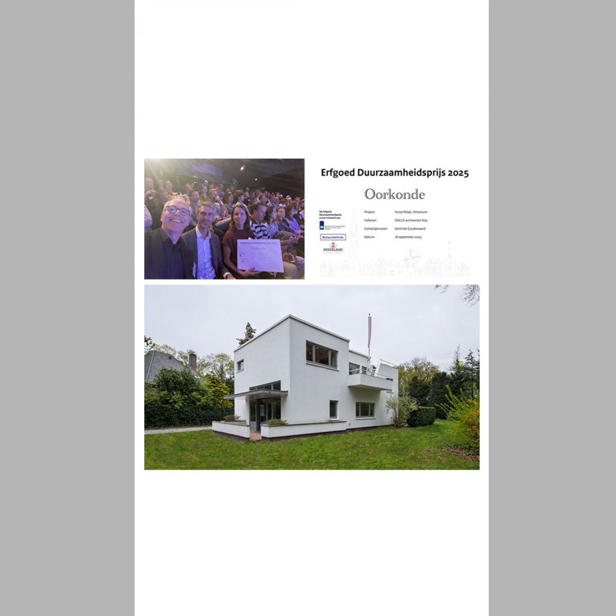 Het Kruithuis in Den Bosch won de Publieksprijs. De vakjury bestaande uit Arjan De Zeeuw, Bert Boer en Ugur Özcan vond alle 5 genomineerde projecten prijswinnaar in verschillende categorieën en daarom kreeg ook VOCUS architecten bna met opdrachtgevers Jasper van der Schaar en Maartje van Diepen een oorkonde voor de verduurzaming van Huize Polak in de categorie vrijstaande huizen.