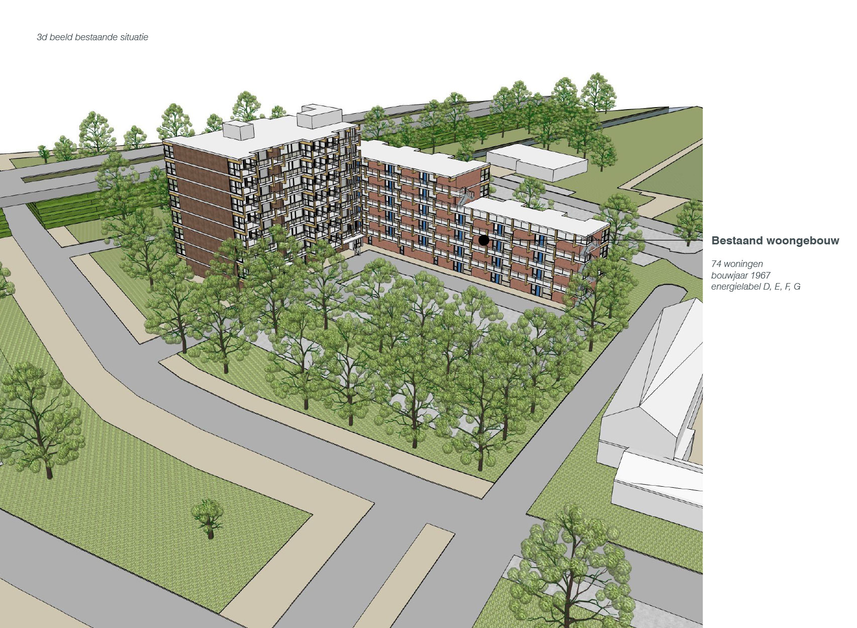 In Breda onderzocht VOCUS de mogelijkheid voor extra woningen bovenop het bestaande woongebouw de Blauwe Kei. Het betreft een woongebouwen uit de jaren ’70 met een betonskelet. De 74 bestaande woningen over 4, 6 en 8 lagen worden middels galerijen en een portiek ontsloten. Op de begane grond zijn de bergingen en de entrees gesitueerd.