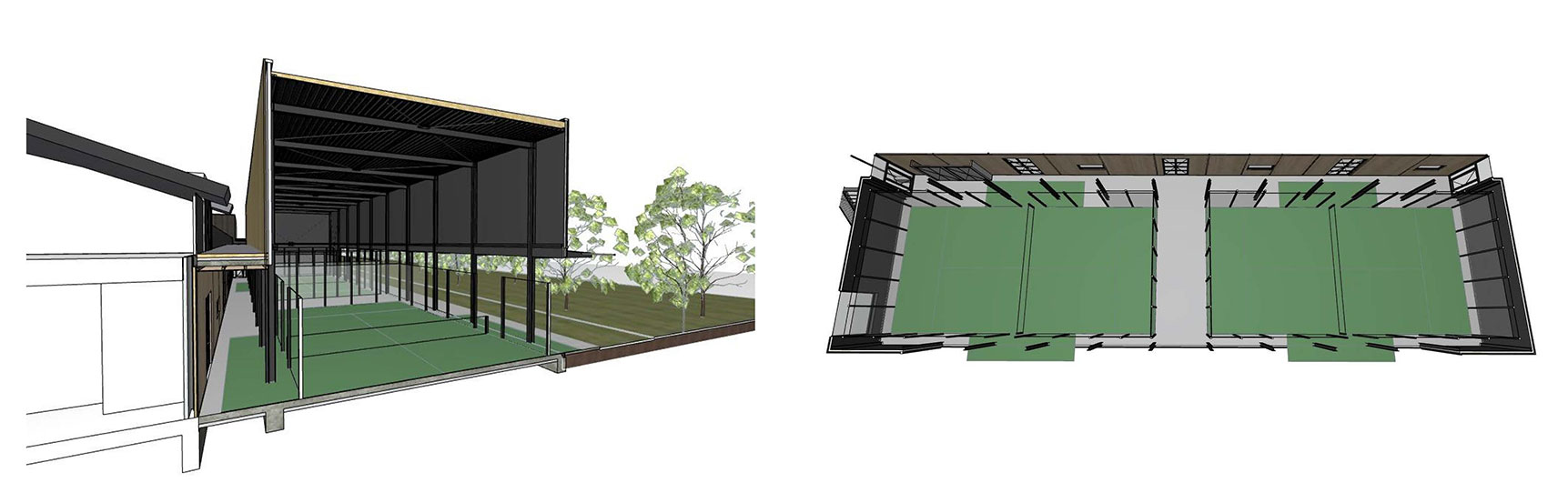 Duurzame padelbanen die binnen en buiten met elkaar verbindt