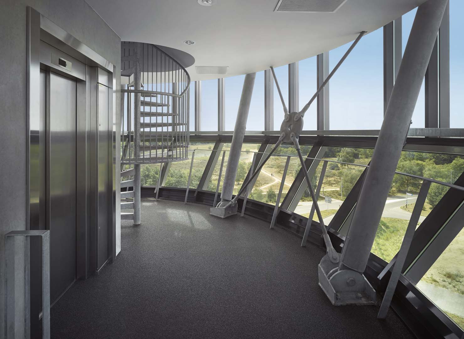 The top floor of the tower contains a meeting and office space with a panoramic view of the surrounding area. The aluminium hood around the reservoir was replaced by glass walls.